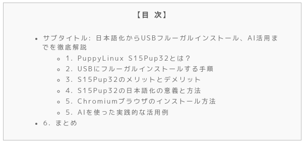 本記事では、PuppyLinuxの特徴から日本語化の方法、USBメモリへのインストール手順、Chromiumブラウザの導入、さらにはAI活用に至るまでを詳しく解説していきます。